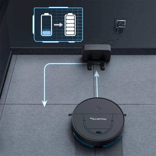 La batterie au lithium-ion offre jusqu’à 120 minutes d’autonomie en une seule charge, suffisamment pour couvrir jusqu’à 120 mètres carrés. La fonction Charge&Go du robot le fait retourner automatiquement à la base pour se recharger puis reprendre la tâche pour la terminer.